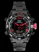 Kolorystyka: Tarcza w kolorze czarnym, koperta i bransoleta w kolorze czarnym, dodatki w kolorze czerwonym/różowym