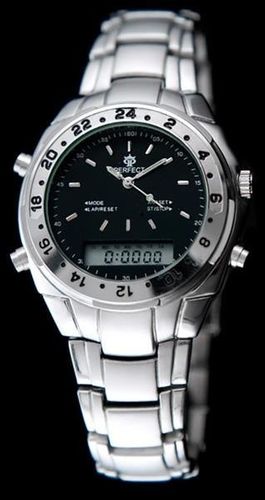 Zegarek posiada 6-cyfrowy wyświetlacz LCD jak i tradycyjne wskazówki.