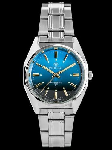 Kolorystyka: tarcza w kolorze ciemnoniebieskim, koperta i bransoleta w kolorze srebrnym, indeks w kolorze złotym