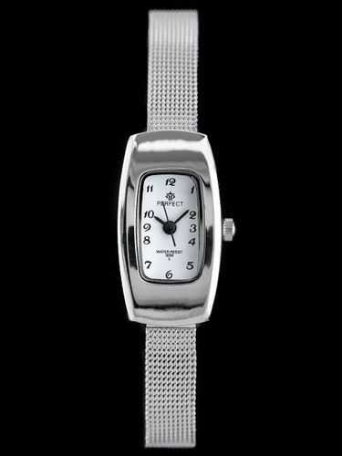Kolorystyka: tarcza w kolorze białym, bransoleta w kolorze srebrnym, koperta w kolorze srebrnym, cyfry i wskazówki w kolorze czarnym