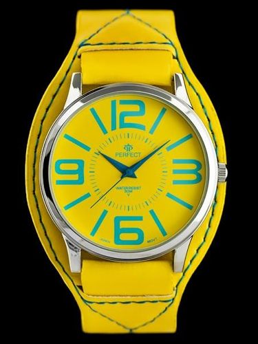 Kolorystyka: tarcza i pasek w kolorze żółtym, koperta w kolorze srebrnym, cyfry i przeszycia w kolorze jasnoniebieskim