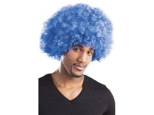 Niebieska peruka afro nada barw imprezie disco. Zostań kreatorem tego stylu w karnawale lub z innej okazji!