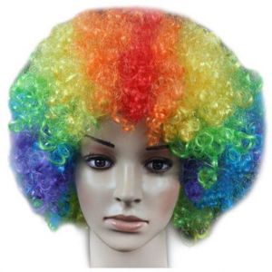 Peruka w stylu afro, kręcone włosy w różnych kolorach. Sztuczne włosy umieszczone na siatce obszytej gumką, dzięki czemu świetnie trzyma się na głowie. Produkt firmy Amscan. Rozmiar uniwersalny dla osoby dorosłej.