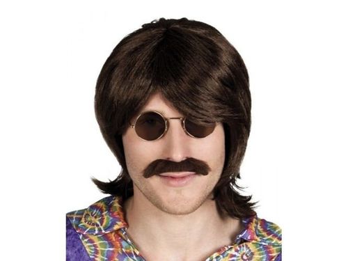 Peruka męska Gary z ciemnymi włosami oraz wąsami. Wybierz przebranie karnawałowe w stylu lat 70 i wejdź w rolę idola imprezy!
