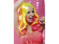 Peruka Neon Sugar - z pasemkami - różowymi i żółtymi, do kobiecej słodkiej stylizacji karnawałowej lub szalone party na Sylwestra? Albo zwariowany wieczór panieński w stylu Barbie albo pop star?