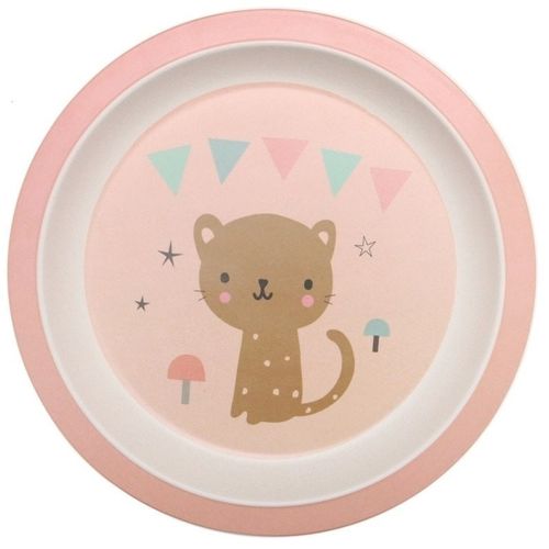 Bambusowy płaski talerzyk z ilustracją Leoparda wykonany z kompostowalnego biokompozytu roślinnego.