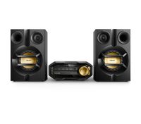 Philips Mikro Wieża FX10Muzyka o potężnym brzmieniu — bezprzewodowo.Bezprzewodowe przesyłanie muzyki ze smartfona przez Bluetooth. Bluetooth to bezprzewodowa technologia komunikacyjna krótkiego zasięgu, która jest solidna i energooszczędna. Technologia ta umożliwia łatwą bezprzewodową komunikację z urządzeniami iPod/iPhone/iPad lub innymi urządzeniami Bluetooth, takimi jak smartfony, tablety czy laptopy. Dzięki temu można w prosty sposób odtwarzać bezprzewodowo ulubioną muzykę lub dźwięk z filmu bądź gry.Podwójny wzmacniasz zapewnia lepszą jakość dźwiękuPodwójny wzmacniacz zapewnia wyższą jakość dźwięku, redukując intermodulację między głośnikiem niskotonowym a głośnikiem wysokotonowym, ponieważ każdy przetwornik jest sterowany własnym, dedykowanym wzmacniaczem. W rezultacie otrzymujemy potężne brzmienie głębokich tonów niskich, które nie zakłócają wyższych częstotliwości cechujących się czystością i szczegółowością. W połączeniu z precyzyjną konstrukcją zwrotnicy aktywnej zapewnia to lepszą kontrolą fazy i pasma przenoszenia każdego przetwornika, czego wynikiem jest bardziej zrównoważony i naturalny dźwięk.MAX Sound to szybkie wzmocnienie głośnościNaciśnięcie przycisku MAX Sound powoduje natychmiastowe wzmocnienie dźwięków niskotonowych i podniesienie do maksimum mocy głośności, co daje imponujące efekty przy słuchaniu muzyki. Zaawansowany układ elektroniczny wysokiej jakości kalibruje bieżący dźwięk oraz ustawienia głośności i od razu wzmacnia tony niskie i głośność do maksymalnego poziomu bez zniekształceń. W rezultacie otrzymuje się wyraźne wzmocnienie zarówno spektrum dźwięków, jak i głośności, co dodaje dynamiki każdej muzyce. Wejście audio umożliwia odtwarzanie muzyki z urządzeń przenośnychWejście audio umożliwia bezpośrednie odtwarzanie zawartości audio z przenośnych odtwarzaczy multimedialnych. Słuchanie muzyki w doskonałej jakości zapewnionej przez zestaw audio to zaledwie jedna z jego zalet. Wejście audio jest niezwykle wygodne — wystarczy podłączyć przenośny odtwarzacz MP3 do zestawu audio. Cyfrowe strojenie z pamięcią stacji zapewnia dodatkową wygodęWystarczy, że znajdziesz żądaną stację radiową oraz naciśniesz i przytrzymasz przycisk programowania, aby zapisać częstotliwość. Dzięki możliwości zapisania ustawień stacji radiowych można do nich uzyskać szybki dostęp bez konieczności ręcznego strojenia.EAN: 4895185619972Gwarancja: gwarancja zewnętrzna 24 miesiąceKod dostawcy: Philips FX10/12System: MikrowieżaLiczba kanałów audio: 2.0Moc głośników (sumaryczna): 230 WTuner FM: TakPasma: FM (UKF)Pamięć stacji: 20Odtwarzacz CD: TakOdczytywane formaty płyt CD: CD-RWOdczytywane formaty płyt DVD: BrakOdtwarzanie z USB: TakOdtwarzane formaty audio: MP3Stacja dokująca: NieFunkcje specjalne: - Funkcje poprawy dźwięku: Funkcja MAX Sound - Budzenie nagraniem z płyty CD- Wyłącznik czasowy- Budzenie radiem- Budzenie z urządzenia USB- Zegar: Na wyświetlaczu głównym - Tryby odtwarzania płyt: Odtw. wielokr./ścieżki/płyty/prog., Odtwarzanie w kolejności losowej, Szybkie odtwarzanie do przodu/do tyłu, Wyszukiwanie nast./poprzed. ścieżki, Odtwarzanie wielokrotne, Programowanie 20 utworów- Tryby USB Direct: Szybkie przewijanie do tyłu/do przodu, Odtwarzanie/wstrzymywanie, Poprzedni/następny, Odtwarzanie zaprogramowane, Odtwarzanie wielokrotneKomunikacja bezprzewodowa: BluetoothZłącza: AUXAkcesoria w zestawie: Pilot- Instrukcja obsługi- Skrócona instrukcja obsługi- GwarancjaKolor: CzarnyWymiary: - Urządzenie: 280 x 118 x 230 mm- Głośnik: 204 x 309 x 145 mmWaga: 4.1 kg