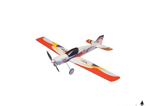 Gotowy oklejony kadłub, gotowe oklejone skrzydła i usterzenie, silnik "480" z przekładnią, śmigło, podwozie z kołami, akcesoria.