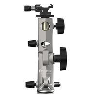 Opatentowany uchwyt na parasol Phottix Varos Pro M został zaprojektowany przez profesjonalnych fotografów, aby zamontować lampę błyskową i parasolkę na lekkim stojaku lub statywie.
