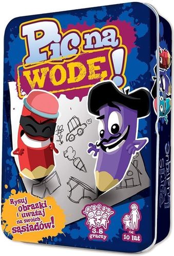 Dali, Van Gogh, Monet, Rembrandt, Kossak... Każdy niesamowity, z własnym stylem, patrzący na rzeczywistość inaczej, a wszyscy sławni. Nie inaczej będzie z Tobą! Postaw na unikalność, niecodzienne spojrzenie, inną perspektywę i myślenie w niestandardowy sposób! Sława czeka także na Ciebie! Chyba że nie jesteś jednym z tych, którzy przecierają szlaki i stawiają czoła krytyce, forsując swoje zdanie. Może wtedy mainstream" będzie dla Ciebie lepszym rozwiązaniem? W końcu przynosi to niezłe pieniądze. W grze Pic na wodę!" stajesz się Artystą albo Fałszerzem. Na początku gry wszyscy otrzymują tajne karty z rolami. Większość ról to Artyści, ale pośród nich ukryje się jeden lub dwóch naśladowców. Następnie odsłaniany jest temat wystawy i wszyscy starają się jak najszybciej narysować trzy proste obrazki, które łączą się z wylosowanym tematem. Przykładowo temat Ostre przedmioty" pozwala na narysowanie, noża, śrubki, rozbitej butelki, szpilek itd. Następnie gracze porównują swoje obrazki. Artyści dostają po jednym punkcie za każdy własny obrazek, którego nikt inny nie narysował. Fałszerze dostają jeden punkt za każdy obrazek narysowany przez przynajmniej jednego Artystę. Dlaczego będziesz się przy tej grze świetnie bawić? Gra nie wymaga umiejętności rysowania. Szybkie, schematyczne obrazki są nie tylko całkowicie wystarczające, ale też dostarczają dodatkowej zabawy przy porównywaniu ich i próbowaniu zrozumienia gryzmołów współgraczy. Role Artysty i Fałszerza wymagają zupełnie innego podejścia do gry. Raz staramy się myśleć możliwie oryginalnie, a w drugim wypadku, podobnie jak to jest w grze Dixit, staramy się domyśleć, o czym mogli pomyśleć współgracze. Gra wydana jest w świetnym, kompaktowym pudełku, łatwym do transportu. Różnorodność tematów wystaw i ich ilość zapewni niekończące się godziny przedniej zabawy. Będziecie grać, grać i grać, aż słońce zacznie wschodzić. I wtedy uznacie, że bez sensu iść spać i będziecie grać dalej. (R))