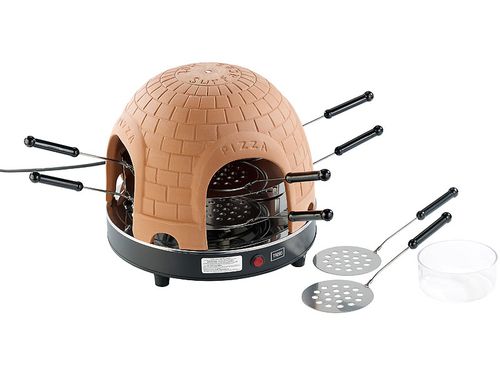 Piec do pizzy dla 8 osób Prawdziwie włoska pizza Chrupiąca, prosta w przygotowaniu, smaczna - tak musi być pizza! Ten genialny piec do pizzy serwuje najlepsze i najprzyjemniejsze mini-pizze, jakie kiedykolwiek jadłeś! Piec idealny dla ośmiu osóbTutaj każdy bierze swoją własną pizzę - prostą z serem, szynką i papryką lub egzotyczną z łososiem, krewetkami i ananasem: to od Ciebie zależy jaką przygotujesz! W ciągu 5-7 minut Twoja ulubiona pizza jest gotowa - świeża i nieodparcie pyszna! Chrupiąca na zewnątrz, puszysta w środkuDzięki kopule z terakoty i dwóm pętlom grzewczym na górze i na dole, ciasto na pizzę na zewnątrz jest przyjemnie chrupiące, wnętrze jest puszyste, a topping niesamowicie soczysty! Piec do pizzy z pokrywą z terakoty Na smaczne mini pizze (średnica: 10,5 cm) na dwóch poziomach lub jedną dużą pizzą (średnica: 33 cm) Bez dymu, bez zapachu tłuszczu Małe pizze gotowe w zaledwie 5-7 minut 2 elementy grzejne powyżej i poniżej Nadaje się również dla tart i ciasta francuskiego Czas nagrzewania: 10 minut Łatwe do czyszczenia: wyjmowana blacha dolnej płyty, zdejmowana pokrywa z terakoty (potrzeba 30 minut do ochłodzenia) Zasilanie: 230 V, 1350 Watt Wymiary (DxSxW): 33 x 33 x 30 cm. Zawartość pakietu: forma do ciasta, 1 płyta dolna, 8 łopatek do wyjmowania pizzy, instrukcja.