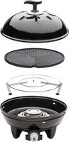 Ten kompaktowy, solidny, przenośny grill gazowy można bez problemu postawić w dowolnym miejscu i zacząć przyrządzać posiłek. Ruszt o średnicy 40cm pokryty nieprzywierającą powłoką doskonale nadaje się to grillowania mięsa, ryb oraz warzyw. Krata piekarnika pokryta powłoką z porcelanowej emalii sprawnie pochłania i równomiernie rozprowadza gorąco co pozwala na przygotowywanie posiłków bez zbędnej zwłoki podczas każdego aktywnego wypoczynku na świeżym powietrzu. Do grilla dołączona jest solidna podstawka na garnek, dzięki czemu można bez problemu ugotować wodę lub posiłek w garnku. Do zestawu dołączona jest również wytrzymała torba to łatwego przenoszenie grilla.
