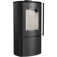 FALCON to stalowy piec wolnostojący o prostych kształtach i ciekawym zaokrąglonym froncie, który umożliwia widok ognia z różnego kąta.