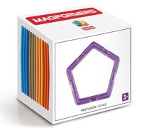 Produkt zawiera 12 kolorowych, magnetycznych klocków w kształcie pięciokątów. Elementy są kompatybilne z wszystkimi zestawami Magformers. Za pomocą figur geometrycznych można zbudować wspaniałe trójwymiarowe budowle, począwszy od prostych figur, skończywszy na pomysłowych budowlach. Magnetyczne klocki mogą być układane na płasko lub w przestrzeni.