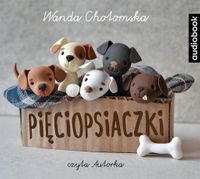 Piękna książka czytana przez autorkę Wandę Chotomską.Poznaj wesołą historię pięciu szczeniąt: Klaksona, Pędzla, Misia, Czepka i Myszki!Pierwszy urodził się ten czarny i kudłaty,drugi cały piegowaty,trzeci brązowy jak czekoladka,czwarty podobny do niedźwiadka,a ta piąta to jest suczka, na szarym końcu urodzonai taka szara, jak myszka, od głowy do ogona.