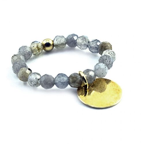 Kamień: Labradoryt fasetowany + srebrny element, pozłacane 24 karatowym żółtym złotem