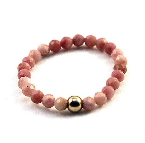 Przepiękny, delikatny pierścionek wykonany z fasetowanych rodonitów, połączonych z żółtym złotem. Doskonale prezentuje się sam jak i w zestawach.