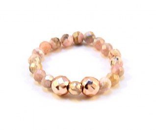Przepiękny, delikatny pierścionek wykonany z fasetowanych rodonitów i hematytów, połączonych z różowym złotem. Doskonale prezentuje się sam jak i w zestawach.