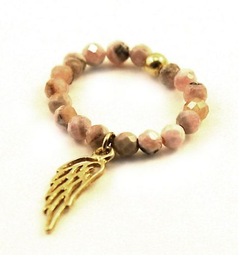 Przepiękny, delikatny pierścionek wykonany z fasetowanych rodonitów , połączonych z różowym złotem. Doskonale prezentuje się sam jak i w zestawach.