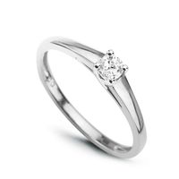 Staviori Pierścionek. 1 Diament, szlif brylantowy, masa 0,15 ct., barwa J, czystość I2. Białe Złoto 0,585. Średnica korony ok. 4 mm. Wysokość 3 mm. Dostępny z dowolnym innym Brylantem na indywidualne zamówienie.