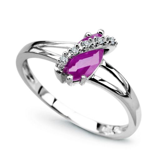 Staviori Pierścionek. 5 Diamentów, szlif brylantowy, masa 0,03 ct., barwa H, czystość I1. 1 Ametyst, masa 0,80 ct.. Białe Złoto 0,585. Średnica korony ok. 5x10 mm.