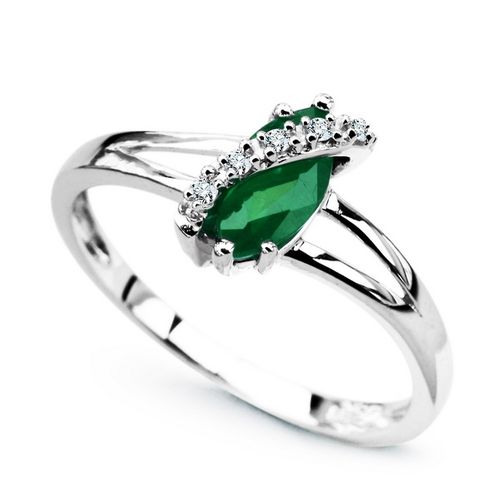Staviori Pierścionek. 5 Diamentów, szlif brylantowy, masa 0,025 ct., barwa H, czystość I1. 1 Szmaragd, masa 0,48 ct.. Białe Złoto 0,585. Średnica korony ok. 5x10 mm.