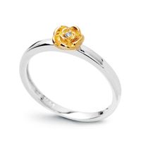 Staviori Pierścionek. 1 Diament, szlif brylantowy, masa 0,01 ct., barwa H, czystość I1. Białe Złoto 0,585. pokryte żółtym złotem Średnica korony ok. 5 mm. Szerokość obrączki ok. 2 mm.