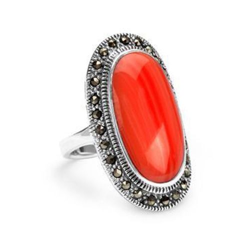 Staviori Pierścionek. Koral. Markazyty. Srebro 0,925. Średnica korony ok. 18x28 mm. Wysokość 9 mm.