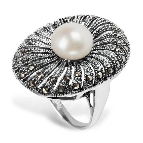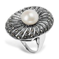 Staviori Pierścionek. 1 Naturalne Perły hodowlane słodkowodne. Markazyty. Srebro 0.925. Długość 28,7 mm.