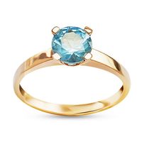 Staviori Pierścionek. Cyrkonia. Żółte Złoto 0,333. Średnica 6 mm. Wysokość 5,7 mm. Model ozdobiono błękitną cyrkonią.