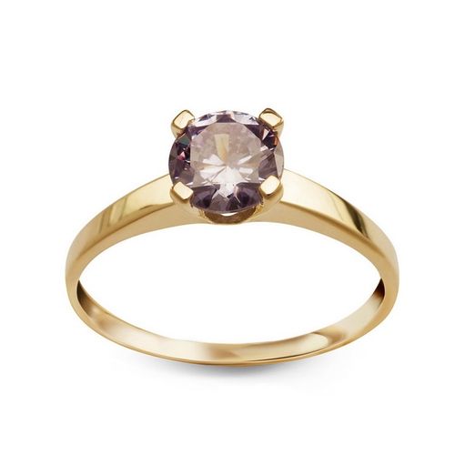 Staviori Pierścionek. Cyrkonia. Żółte Złoto 0,333. Model ozdobiono fioletową cyrkonią.