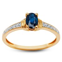 Staviori Pierścionek. 6 Diamentów, szlif brylantowy, masa 0,028 ct., barwa H, czystość I1. 1 Szafir, masa 0,60 ct.. Żółte Złoto 0,585.
