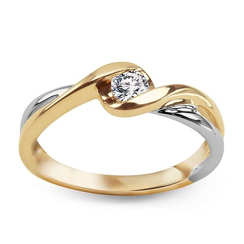 Staviori Pierścionek. 1 Diament, szlif brylantowy, masa 0,20 ct., barwa J, czystość I1. Żółte, Białe Złoto 0,585. Szerokość 4-1 mm. Wysokość 3 mm.