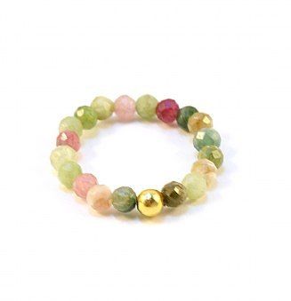 Przepiękny, delikatny pierścionek wykonany z fasetowanych turmalinów cukierkowych, połączonych z żółtym złotem. Doskonale prezentuje się sam jak i w zestawach.