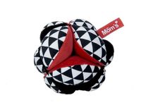 Piłeczka składa się z różnych tkanin. Tkaniny różnią się nieco w dotyku, co rozwija sensorykę dziecka. Kolorypiłeczki to barwy podstawowe biały, czerwony i czarny, dzięki czemu może być łatwiej zobaczona nawet przez nowonarodzone dziecko.