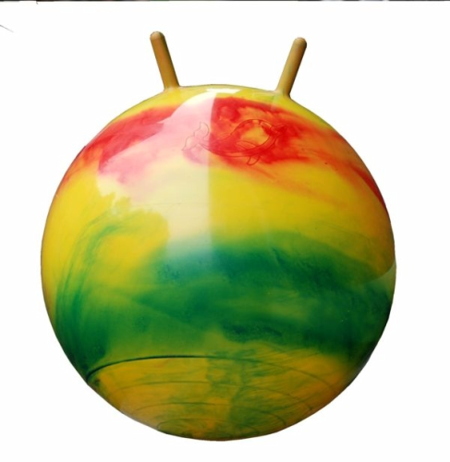 Kolorowa piłka do skakania z dwoma uchwytami.