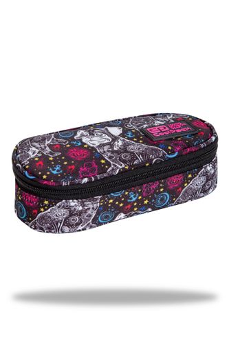 Pojemny i funkcjonalny piórnik z klapką zamykaną na suwak. Charakteryzuje się bardzo starannym wykonaniem oraz ciekawym wzorem w mopsy. Piórnik uszyto z wytrzymałego i wodoodpornego materiału. Pojemna komora pomieści wszystkie potrzebne akcesoria. Dodatkowo zakładki na długopisy lub inne przybory do pisania, które pomogą zorganizować przestrzeń. Piórnik jest doskonałym uzupełnieniem do innych produktów CP z serii COCO.