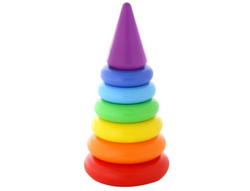 Piramidka skłsdająca sie 8 kolorowych elementów, zakończona stożkiem.