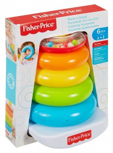 Maluszek układa kolorowe kółeczka jedno na drugim i uczy się porządkować przedmioty według wielkości. Gdy uderzy w podstawkę, piramidka będzie się zabawnie kiwać!