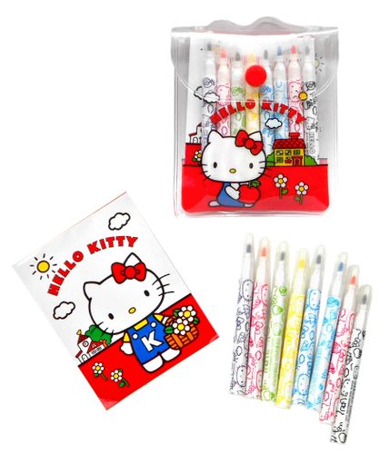 Niesamowicie uroczy zestaw mini pisaków Hello Kitty. Komplet składa się z 8 kolorowych mazaków z zatyczką. Całość estetycznie zapakowana w sylikonowe etui, doskonale sprawdzi się w szkole i podczas zabawy.