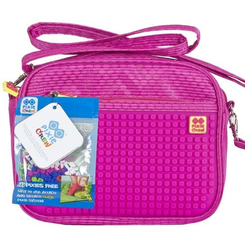 PIXIECREW Torebka mała fuksja Praktyczna torebka na ramię do codziennego użytku z panelem silikonowym (jest to specjalna powierzchnia, na której za pomocą silikonowych pixelowych klocków można układać niepowtarzalne wzory, które nadają produktowi wyjątkowy charakter) o wymiarach 26x13 punktów, co oznacza,że jest 443 pozycji, aby ułożyć swoje wzory. Pokryty pikselami panel torby jest giętki i niezwykle trwały. Piksele bardzo dobrze trzymają się powierzchni, przez co są odporne na codzienne użytkowanie produktu Zaprojektuj front torby według własnego pomysłu. Zmieniaj go jak chcesz i kiedy chcesz. Bądź kreatywny.Torebka posiada regulowany pasek, zapinany po bokach torebki za pomoca karabińczyków. Zapinana na zamek błyskawiczny. Z przodu kieszonka zapinana na zamek błyskawiczny. Wewnątrz torba podzielona jest na dwie części. Jedna z nich zapinana na rzep.Z torbą otrzymujesz zestaw ok. 200 pikseli. Produkt nagrodzony ZABAWKA ROKU 2017 w kategorii: zabawka szkolna.Wiekod 7 latWymiaryp12,5 × 23,5 × 6 cm/p