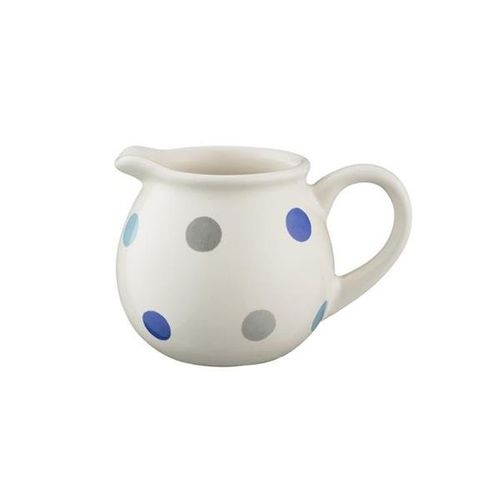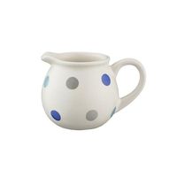 Wykonany z ceramiki i ozdobiony groszkami w kolorach niebieskim oraz szarym – ręcznie malowane
