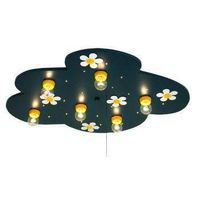 Uroczy plafon w kształcie chmurki z przepięknymi kwiatami i świetlistymi gwiazdami , stworzy niepowtarzalną atmosferę w pokoiku dziecięcym. Posiada dodatkowy wyłącznik. Oświetlenie można włączać sekwencyjnie, czyli mogą się palić duże i małe światła, mogą same duże lub małe które stwarzają nocą wrażenie gwiaździstego nieba.