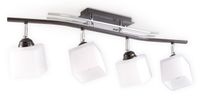 Źródło światła: E27, 4 x max. 60W, 50 Hz, 220V, IP20. Żarówka nie jest w komplecie. Wymiary: 23 x 74 x 10 cm Materiał: Stal/szkło Kolor: Brązowy/Biały