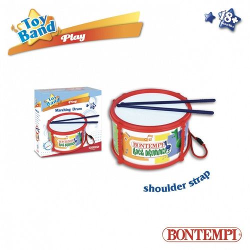 Bębenek marszowy włoskiej firmy Bontempi to idealny instrument dla małego dobosza. Bębenek ma średnicę 210 mm, 2 plastikowe pałeczki oraz pasek na ramię wykonany z tworzywa sztucznego.