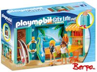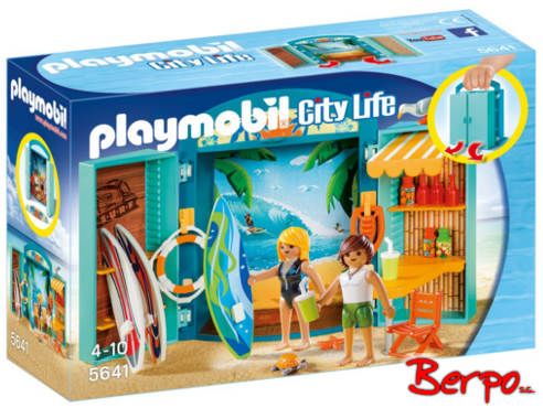 Zestaw Sklep surfingowy to komplet figurek i akcesoriów, którym można bawić się samodzielnie lub połączyć go z innym, tematycznym zestawem. Całość mieści się w niebieskiej, rozkładanej skrzynce, której wewnętrzne boki i plecy tworzą sklepową witrynę, na której rozłożymy towar. Na środku znajduje się ilustracja surfera, którego niesie wysoka fala. To doskonałe tło do zabawy! Po obu stronach stoją półeczki z akcesoriami. Jedna z nich posiada specjalne uchwyty pod deski.