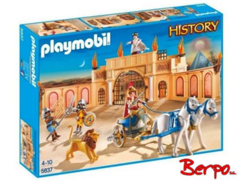 Rzymska arena 5837. Oto miejsce walk, turniejów, popisów, igrzysk i widowisk. Dzielni, muskularni gladiatorzy toczą tu walki z dzikimi zwierzętami. To także miejsce wyścigów rydwanów. Zestaw Playmobil nawiązuje do historycznych wydarzeń z okresu świetności Imperium Rzymskiego. Zawiera elementy areny z klatkami, bramą, trybuną i fragmentem murów. Akcesoria tematyczne i figurki pozwolą małym miłośnikom historii na zabawę w odtwarzanie wydarzeń sprzed wieków.