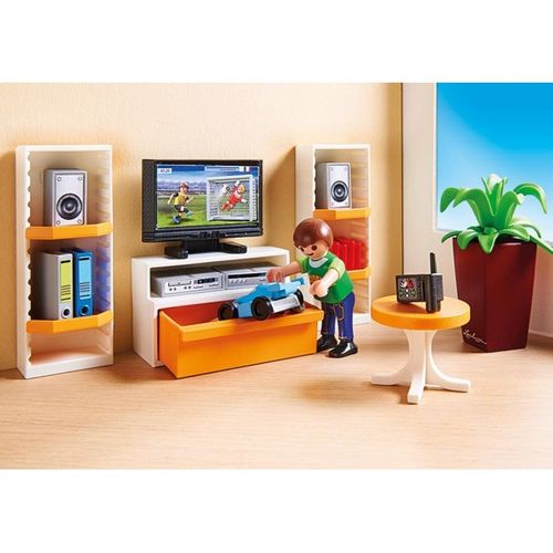 Salon to zestaw, który idealnie uzupełni Nowoczesny dom 9266. Może także służyć jako niezależny zestaw do zabawy figurkami i akcesoriami Playmobil.