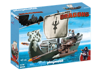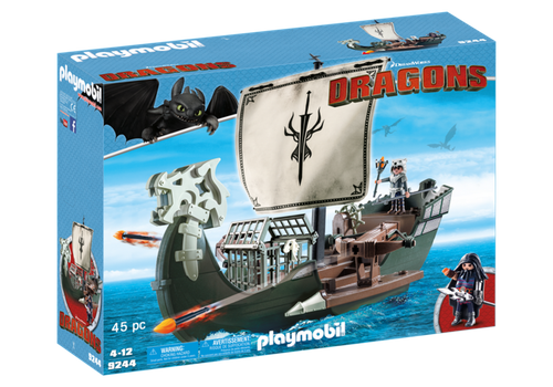 Seria Playmobil Dragons nawiązuje do uwielbianej przez dzieci i dorosłych bajki "Jak wytresować smoka". Statek prezentuje się naprawde okazale. Na statku zamontowana została wyrzutnia pochotni, która pozwoli na obronę przed wrogiem. Na statku znajduje się także klatka na smoka. Statek unosi się na wodzie co jeszcze bardziej przypomina znane sceny z filmu.
