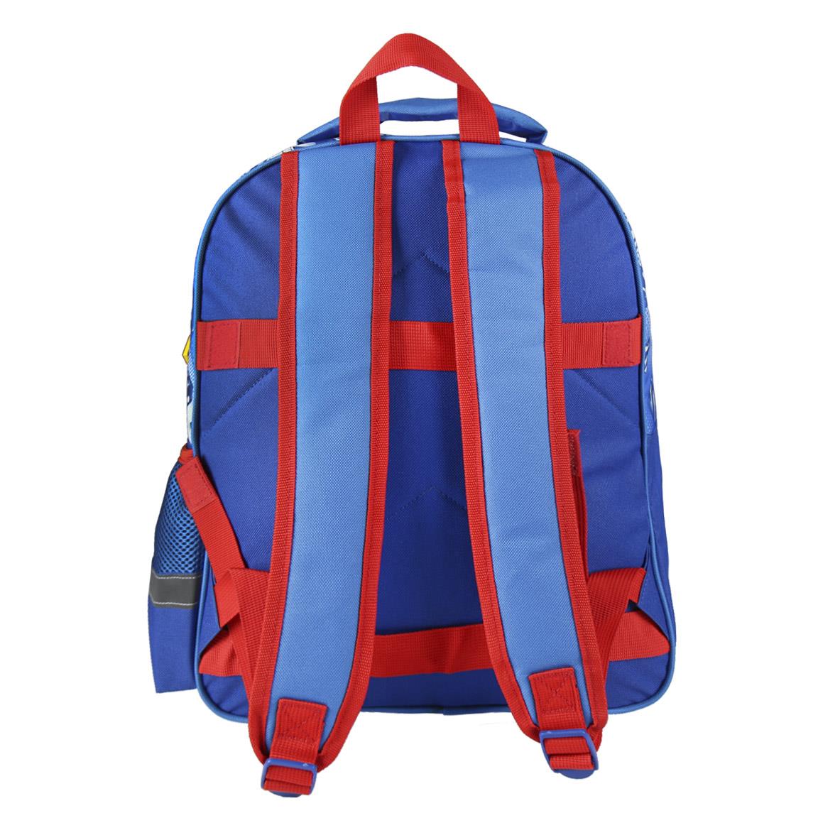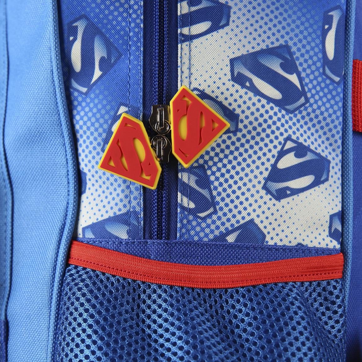 Plecak młodzieżowy Superman. Wykonany z wysokiej jakości materiału, bardzo funkcjonalny. Wyposażony w dwie pojemne komory zapinane na zamek i jedną siateczkową kieszonkę po boku. Tył usztywniany z gumeczkami do montażu ewentualnego stelaża. Ramiona szerokie, regulowane zapewnią komfort w noszeniu. a górny uchwyt w formie rączki ułatwi przenoszenie i przechowywanie.
